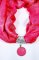 Bijou de foulard en métal couleur argent vieilli, pendentif métal et cuir de vachette grainé, tannage minéral, coloris rose fushia.